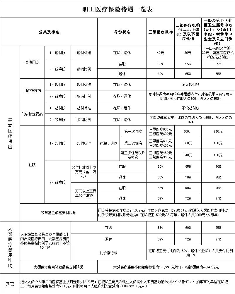 职工医疗保险待遇一览表(2024年)
