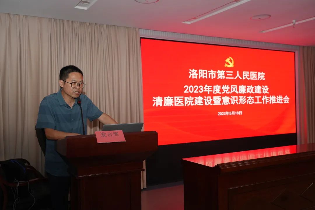 5月18日下午,我院在6楼会议室召开2023年度党风廉政建设、清廉医院建设暨意识形态工作推进会。院党委领导班子成员,各党支部书记,纪委委员,临床医技科室主任、护士长、职能部室主任共计80余人参加会。议。院党委书记董均主持会议。