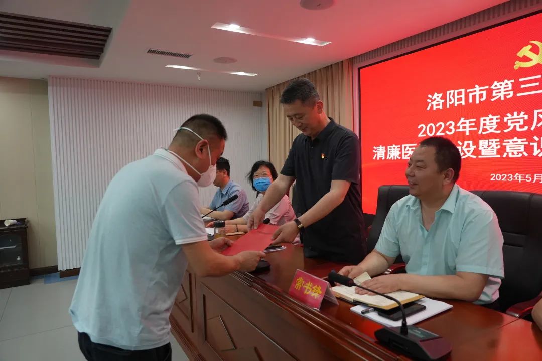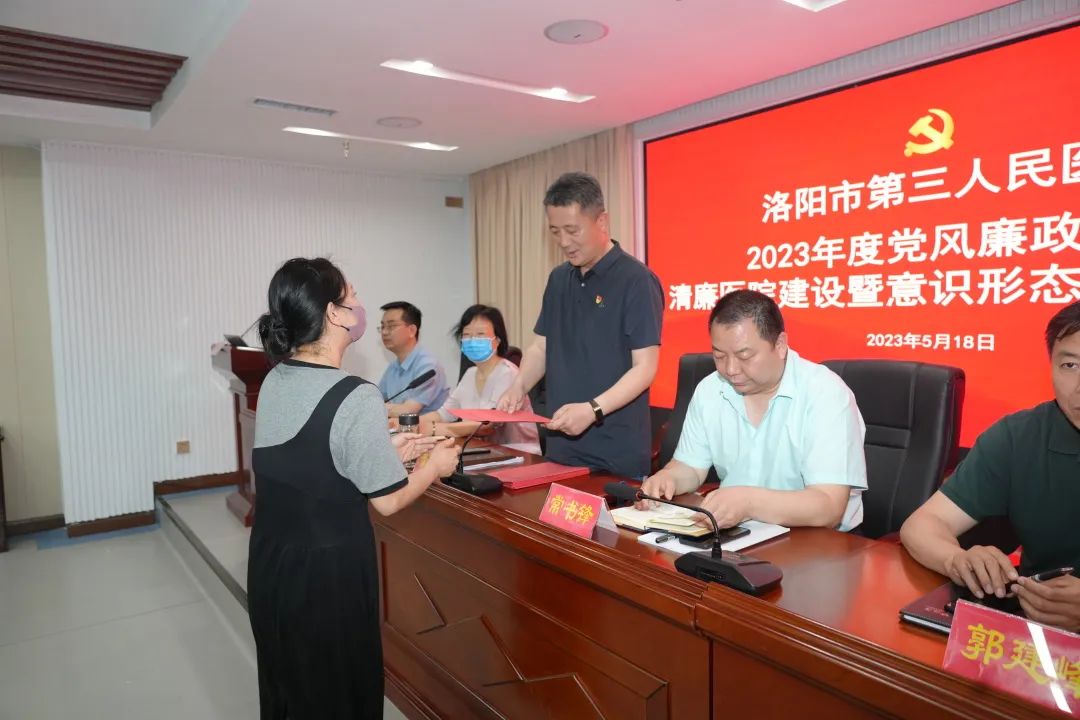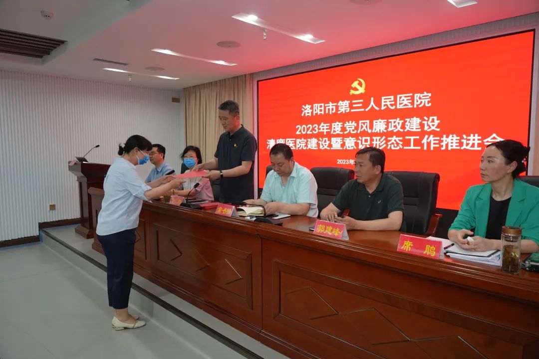 支部书记、临床医技和职能部室代表向院党委递交了2023年《党风廉政建设目标责任书》、《行风建设目标责任书》。