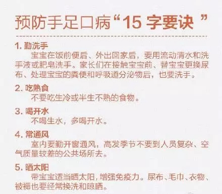随着温度逐渐升高,手足口病逐渐进入高发期,宝宝家长需警惕。根据以往规律,每年3月手足口疫情开始上升,4--7月进入第一个发病高峰期。 什么是手足口病 ▼▼ ●主要特征 手足口病以发热、口腔粘膜疱疹或溃疡,以及手、足、臀等部位皮肤出疹为主要特征。 ●传播途径 主要通过接触患者鼻咽分泌物、唾液、疱疹液、粪便,以及接触被污染的玩具、奶瓶、餐饮具等物品或环境进行传播。 ●高发期 每年3月手足口病疫情开始上升,4月至7月会迎来第一个高发期。 ●发病人群 手足口病发病人群以5岁及以下儿童为主,6月龄以下婴儿因有胎传抗体的保护发病较少,从6月龄开始发病逐渐增加,1岁至2岁儿童发病风险最高。 如何预防手足口病? ▼▼ 专家建议,我国自主研发上市的EV71疫苗可有效预防手足口病,该疫苗的适龄儿童为6月龄至5岁,建议低龄儿童尽量在12月龄前完成2剂次接种程序。 对于5岁以上儿童和成人,多数已通过自然感染获得免疫,一般不再推荐接种EV71疫苗。 据悉,目前该疫苗尚属第二类疫苗,需要家长自费、自愿选择接种。 日常还要注意这些问题! ▼▼ 流行病高发季节,家长应做到: 少带孩子去人群密集地方, 保持家庭环境卫生, 督促宝宝勤洗手, 对于患有手足口病的孩子,家长要加强护理工作。 快提醒身边的家长们, 一定要做好预防措施!