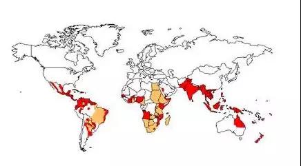 从全球范围来看,登革热主要分布在热带和亚热带地区,这主要是因为登革热病例的发生必须依赖于伊蚊的密度、数量以及携带病毒的情况。