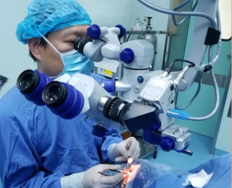 1920年出生的杜老先生就是洛阳眼科医院精湛技术的受益者之一。半年前,一向身体硬朗、精神矍铄的他,无明显诱因,出现右眼视力下降、视物不清症状,入秋以来,进行性加重,自觉明显影响正常生活。10月10日,杜老先生在儿子的陪同下,来到洛阳眼科医院就诊,检查显示,其右眼视力仅有0.2,遂以“老年性白内障”收住眼科白内障病区。次日7时45分,在眼科主任李景波团队的共同努力下,为老人实施了“右眼白内障超声乳化+人工晶体植入术”,整个手术过程仅用时10分钟,就成功完成。