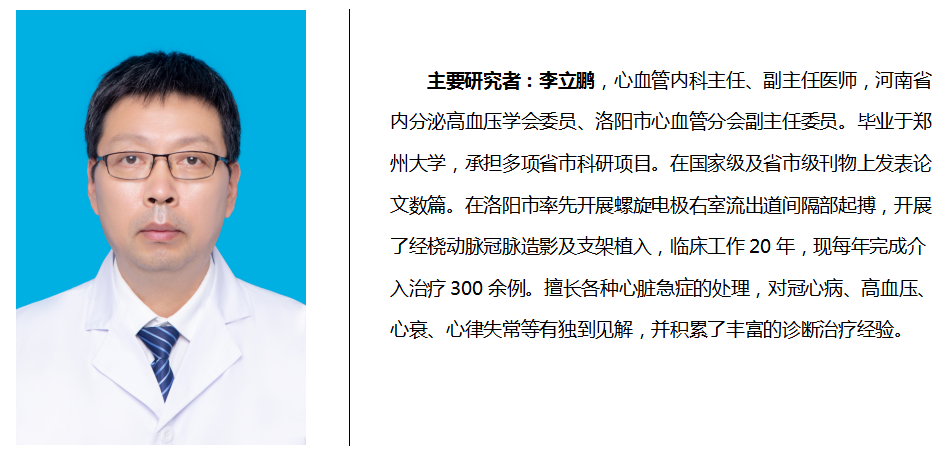 近年来,经过不懈努力,心内科的临床、教学、科研得以全面协调发展,现已成为技术水平高、人才梯队完善、设备先进的重点科室 。目前,科室有医师13名,其中主任医师3名,副主任医师2名,主治医师5名,住院医师3名,硕士生3名。每年发表学术论文10余篇,获洛阳市科技进步奖多项。在冠心病、急性心肌梗死、心律失常、心力衰竭、高血压病及心肌病的临床诊断和治疗方面积累了丰富的临床经验。