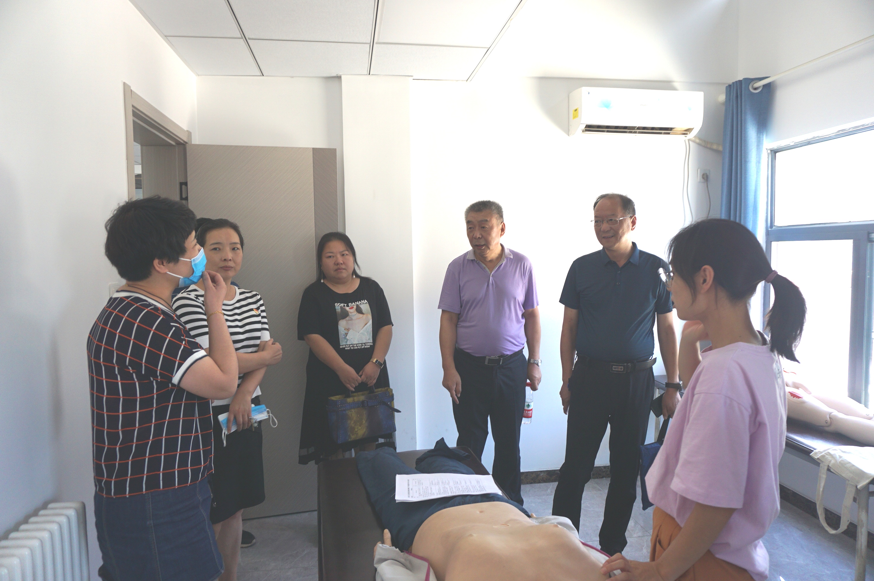 韩主席一行看望了将代表教科文卫体工会参加市职工、法律知识竞赛的选手,嘱托选手们要精心准备,争取好成绩。同时,参观了医学模拟实训中心,查看了孙建强劳模工作室、母婴室和职工小家建设情况。