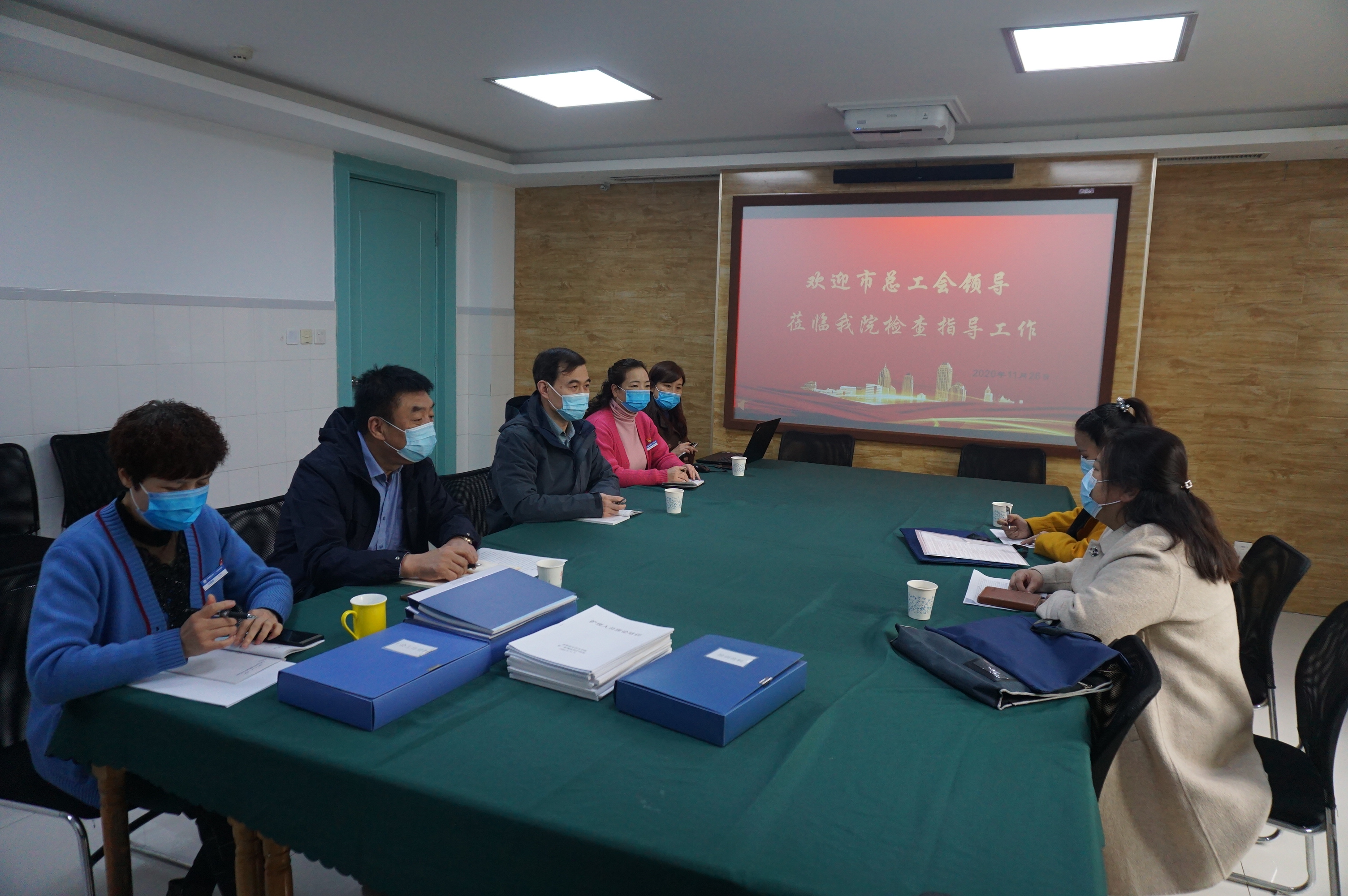 11月26日下午,市财贸工会主席王璟、教科文卫体工会副主席张婷,到医院进行年度工会工作考核。