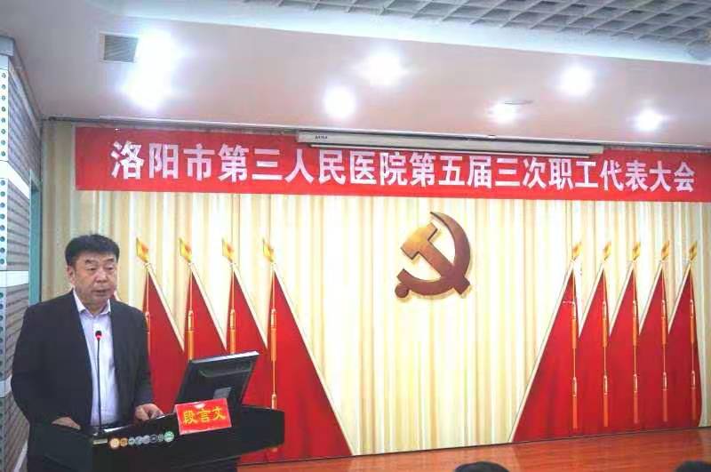 1月28日下午14:10,门诊六楼学术报告厅,在雄壮的国歌声中,洛阳市第三人民医院五届三次职工代表大会胜利开幕,来自全院的75名职工代表齐聚一堂,共商医院发展大计。