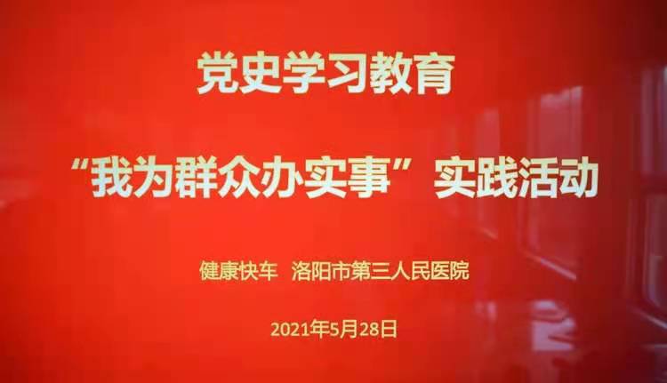 为推动党史学习教育走深走实,进一步提升党员政治意识、增强政治担当、深入践行党员宗旨,5月28日下午,洛阳市第三人民医院(洛阳职业技术学院第一附属医院)第一党支部与第二党支部在党委书记马伟和院长邢建武的带领下组成志愿者服务队,到“健康快车”组织了一场特别的主题党日活动。