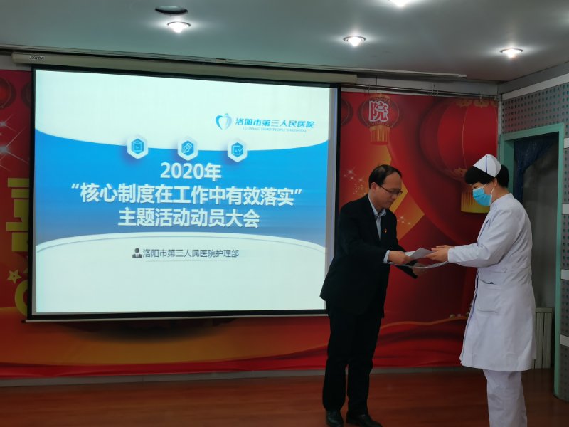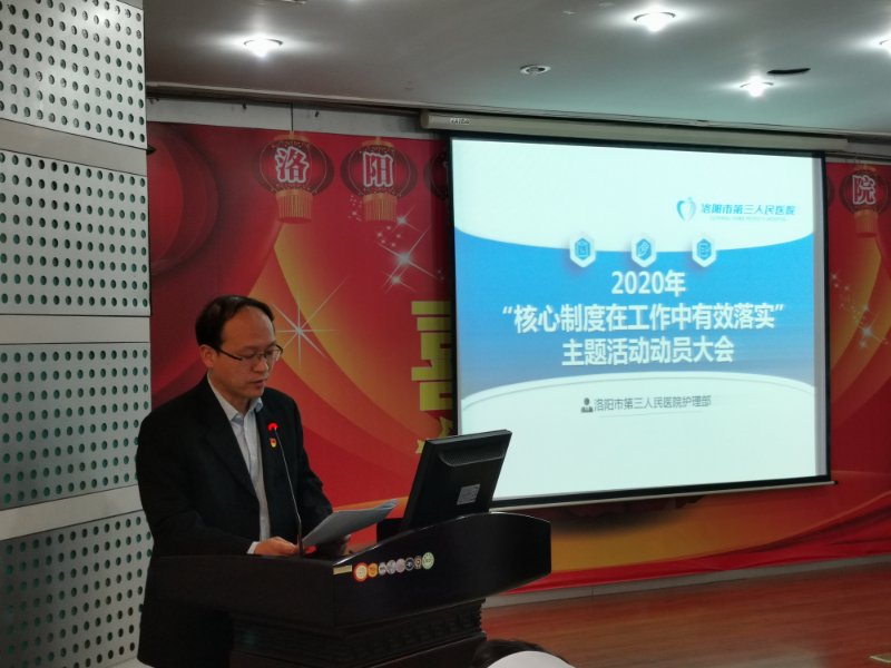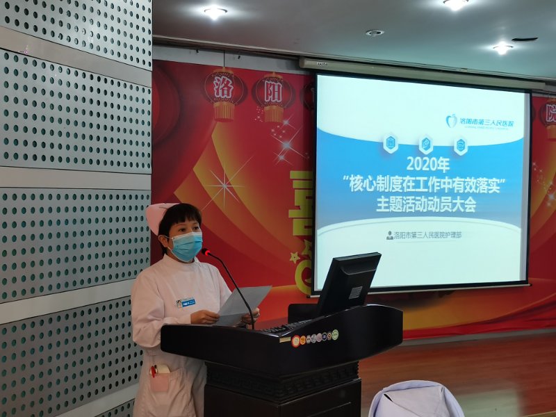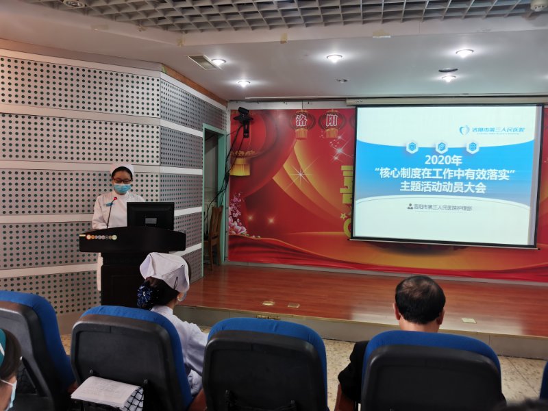 洛阳市第三人民医院护理部为了提升护理人员整体素质,为了给患者提供更满意的服务,在医院领导的大力支持下,护理部准备进行为期三个月的“核心制度在工作中有效落实”主题活动,3.24进行了此次主题活动的动员大会,会议有护理部主任陈春霞主持,并邀请了主管护理工作的马院长参加会议,各科护士长及科室的一级质控人员都参加了会议。
