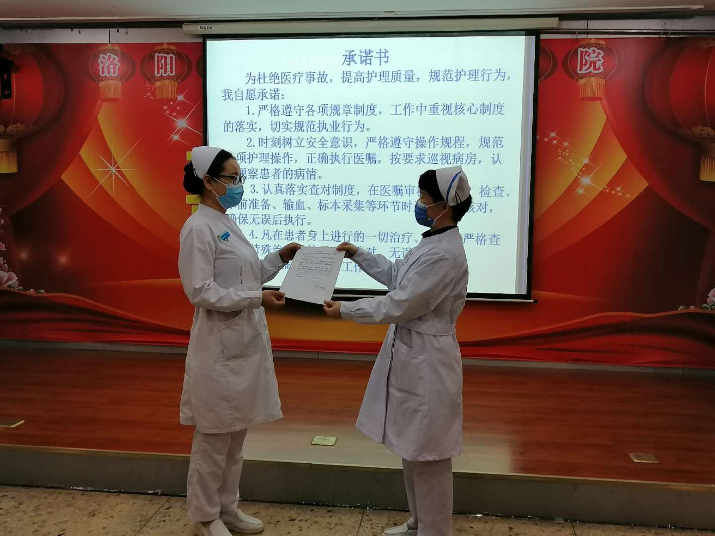 护士长向马院长递交2020年科室护理目标管理责任书,这是一份沉甸甸的责任与担当。