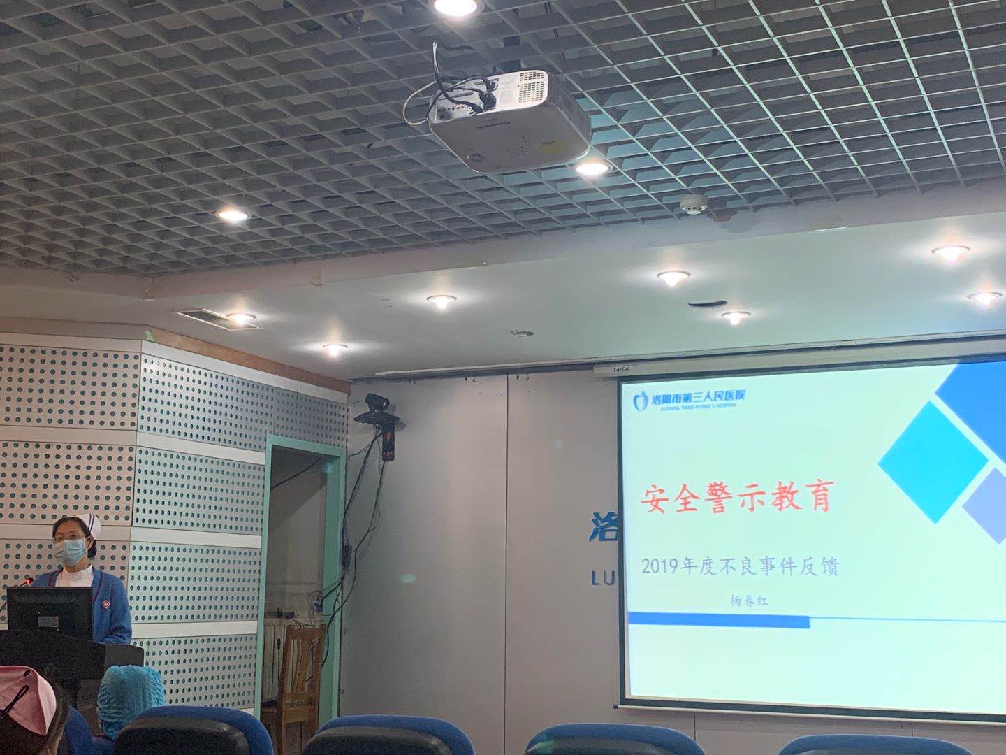 2020年4月10日下午在洛阳市第三人民医院门诊六楼举办了“2020年核心制度在工作中有效落实”的系列活动:护理部进行安全警示教育;药剂科对护理人员进行药品管理方面的知识培训,使大家在工作中更加认真、仔细、用心,让安全的警钟在大家的心中长鸣。