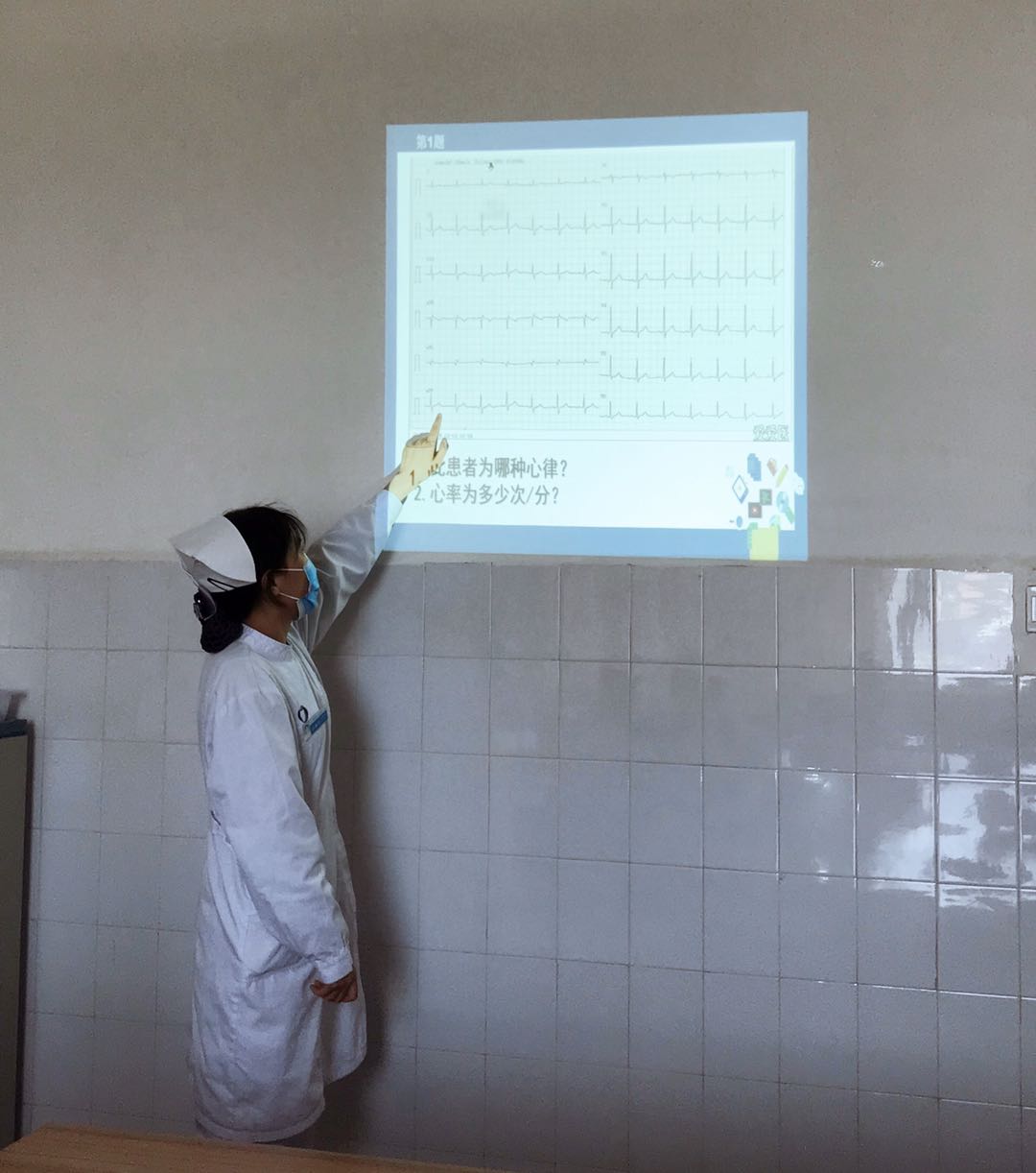 首先进行的护理业务查房环节,通过责任护士分享病例,大家沟通探讨护理问题,完善护理措施,为患者尽早康复提供有力支撑。紧接着进行的是异常心电图识别大赛,异常心电图识别是心血管内科护理人员的必备技能之一,快速而准确地识别异常心电图为能为患者的救治赢得黄金时间。最后进行的是慧眼识药环节,心血管内科患者年龄普遍偏高,口服药种类多,用药剂量调整频繁,因此,心血管内科护理人员需练就“火眼金睛”的本领,以确保患者用药及时、准确。