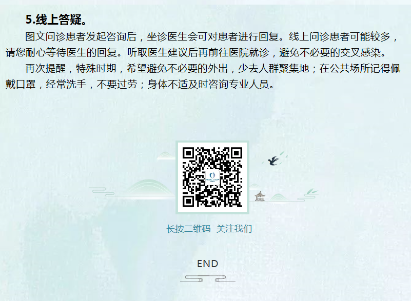 在新型冠状病毒肺炎疫情严峻的形势下,为方便广大病友就医,我院开通了互联网医院线上问诊小程序,为市民免费提供便捷的健康指导和在线咨询服务。