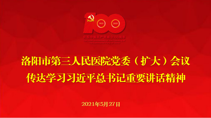 会议要求,要将扎实开展好党史学习教育,同中国共产党成立100周年庆祝活动结合起来,同巩固深化“不忘初心、牢记使命”主题教育成果结合起来,同推进医院高质量发展的重点工作结合起来,为建设三级甲等医院和健康洛阳而不懈奋斗。