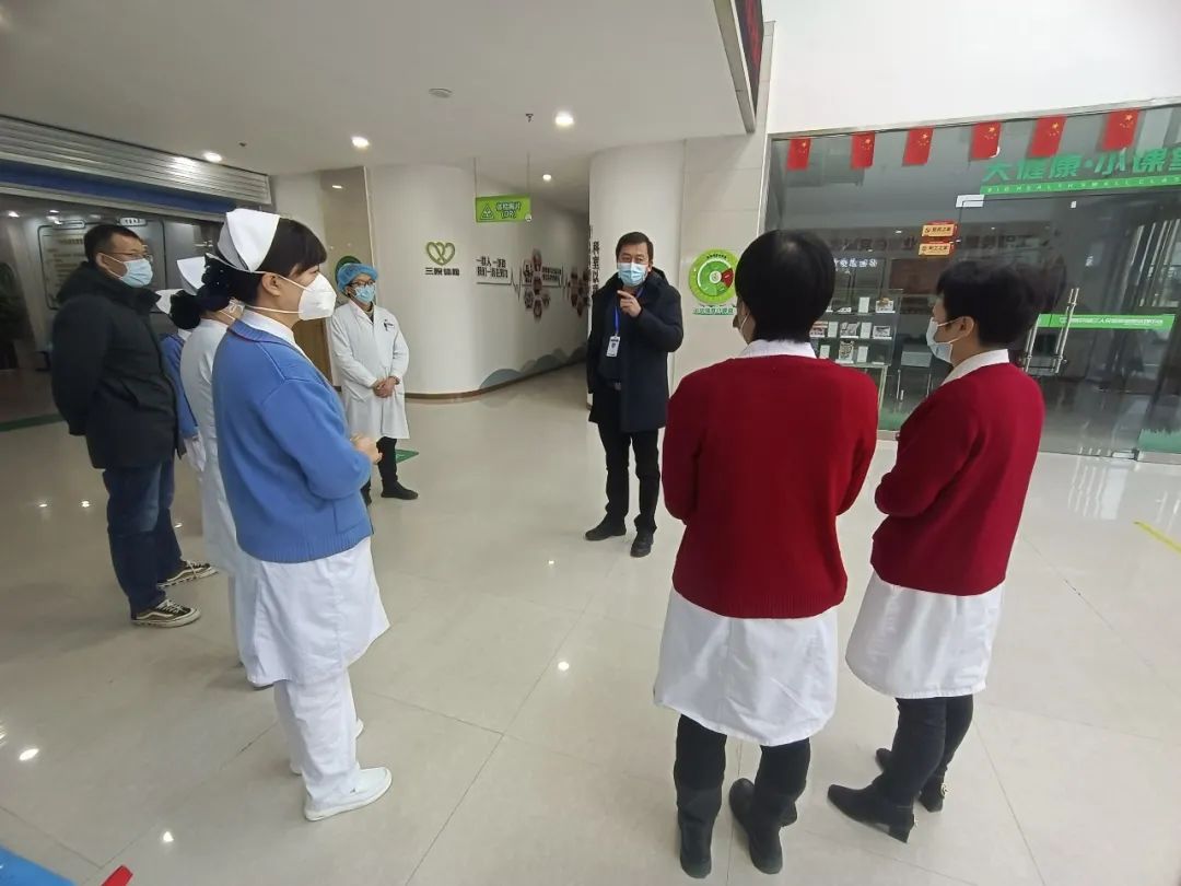 1月1日上午,副院长郭建峰带领护理部主任陈春霞、感染管理科王瑞敏、门诊部刘昌,门诊护士长徐娅娟、监察室陈海燕对普通门诊、急诊科、发热门诊、核酸检测点、南北院大门门岗、体检科、眼科医院进行疫情防控督导。