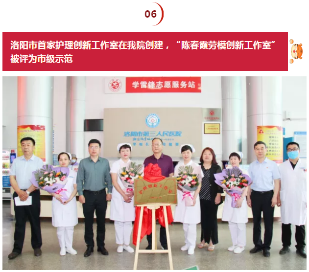 5月11日上午,我院护理创新工作室揭牌仪式在医院门诊大厅举行,洛阳市总工会教科文卫体工会主席韩兵出席了揭牌仪式。韩兵主席希望工作室秉承“专业、引领、创新、传承”精神,做出特色,做出品牌。韩兵一行还参观了护理创新工作室、特色护理门诊及医学模拟实训中心。我院护理创新工作室系洛阳市总工会教科文卫体工会确定的全市首家护理创新工作室,其开展“师带徒”传帮带、深化护理服务内涵,开展护理专科门诊,为患者及群众解决护理相关疑难问题,其“伤口护理”和“护士到家”服务成绩突出,我院“陈春霞劳模创新工作室”被市总工会命名为“2021年度市级示范性劳模和工匠人才创新工作室”。
