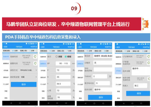 5月31日,卒中绿道物联网数字化软硬件管理平台项目经院长办公会审议通过。给予此项目团队5万元用于自主研发,项目团队由马鹏华、田学辉、孙冰、孙新组成,由马鹏华牵头负责。目前,已实现卒中绿道物联网数字化软硬件管理平台前期基本功能。卒中绿道物联网数字化软硬件管理平台是具备卒中急救实时建档、实时精准定位、实时监控生命体征数据、实时记录时间节点等功能的卒中救治管理平台,使卒中绿道各科室可以更好落实的各项流程及制度,保证治疗的效果和及时性。