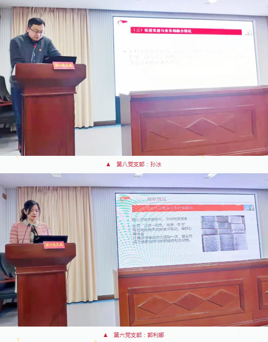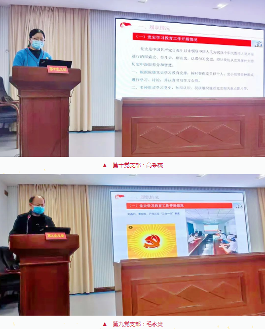 11位党支部书记结合各自工作岗位,从党史学习教育开展情况、履行党建责任情况、政治建设和思想建设工作情况、党建工作与业务工作融合情况、党支部建设情况、党风廉政建设和意识形态工作责任制落实情况、亮点工作和存在的问题、下一步改进措施及计划等方面进行述职,院党员领导干部分别就所联系和组织关系所在党支部的述职情况进行点评,指出存在的问题,明确了努力方向。