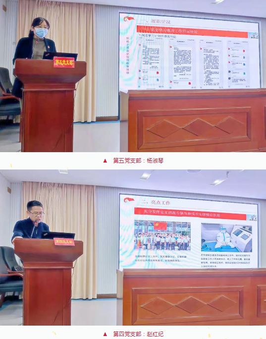 会议组织学习了习近平总书记关于党史学习教育总结工作作出的重要指示:认真总结这次党史学习教育的成功经验,建立常态化、长效化制度机制,不断巩固拓展党史学习教育成果。持续学习贯彻党的十九届六中全会精神,坚持党史学习教育中好的做法,利用红色资源,讲好红色故事,弘扬伟大建党精神和崇高的职业精神,继续为群众办好事、办实事,提高职工和就医群众满意度。以“能力作风建设年”为抓手,提高党员干部的政治能力、专业能力、创新能力、统筹防范能力和群众工作能力,推进实施“13710工作机制”和“四不两直”工作法,克服形式主义、官僚主义作风,把党建工作做实做细做好。探索“党建查房”机制,促进党建与业务管理工作进一步融合,提高党支部和医院纪检监察体系、组织建设体系、思想宣传体系、群团组织体系的组织力、执行力,完善“五星支部评选”和“党员积分制管理”办法,突出医德医风建设和医院文化建设,为医院高质量发展提供坚强的组织和政治保障,以党建工作高质量迎接党的二十大胜利召开。