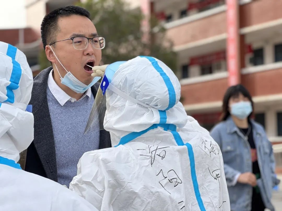 在采样过程中,苗主任不忘自己的专业技术,“你的扁桃体化脓了!”他对前来接受采样的一名小朋友说,并及时给出了治疗方案。
