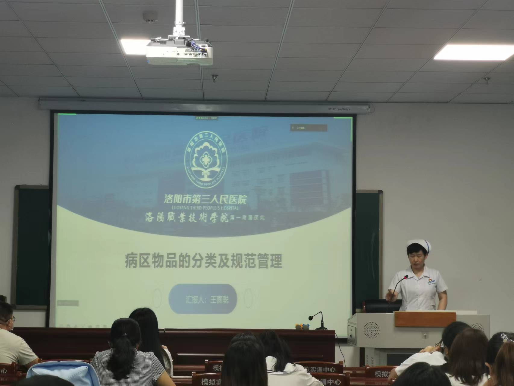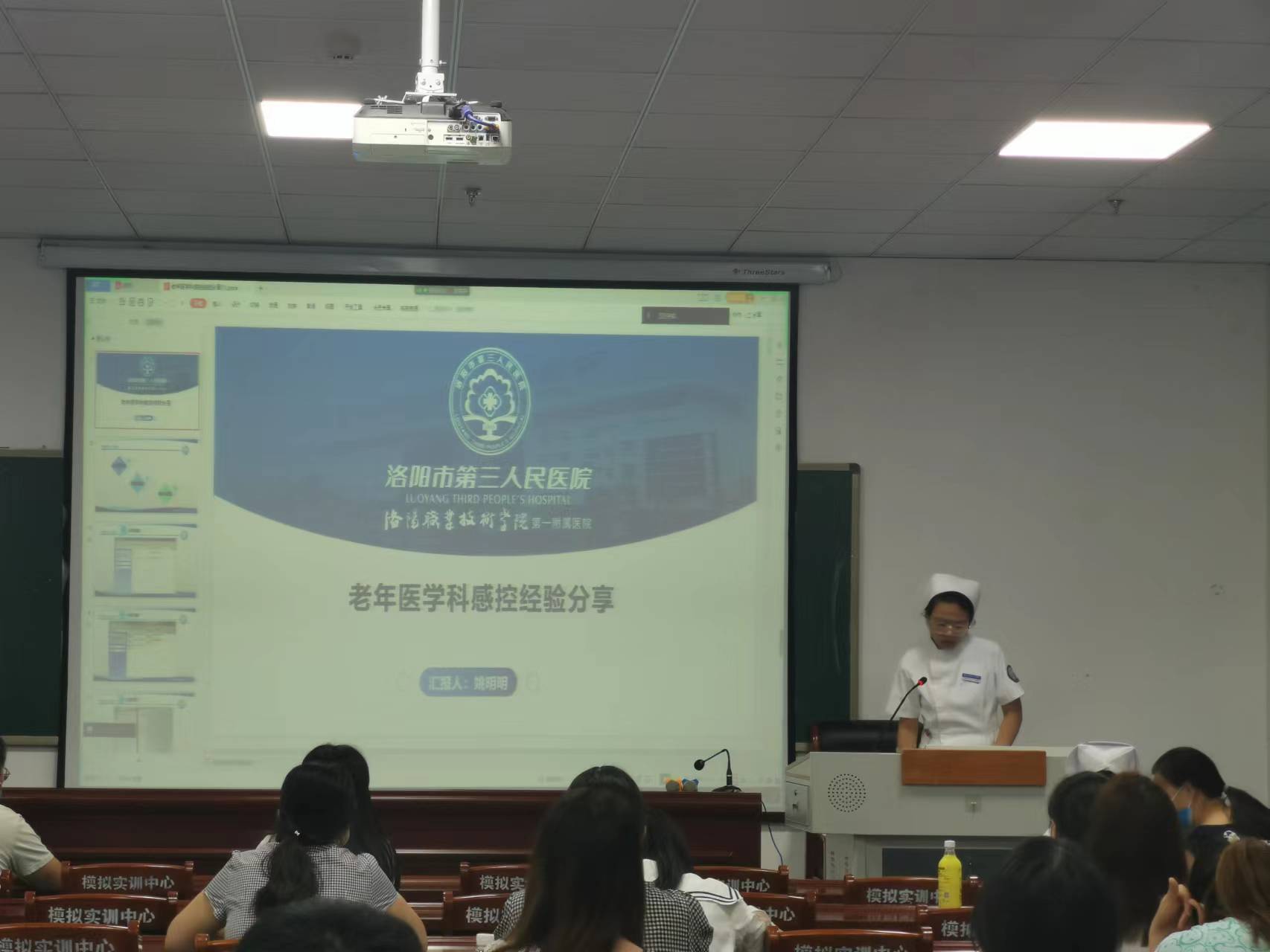 老年医学科感控护士姚明明从台账管理、疫情防控、日常质控几个方面分享了她在科室如何做好感控工作,科室每周周会及时反馈感控质量问题,疑难问题及时寻求主任护士长的协助,她说“心在一起,我们就是最好的团队,院感建设、你我同行”。