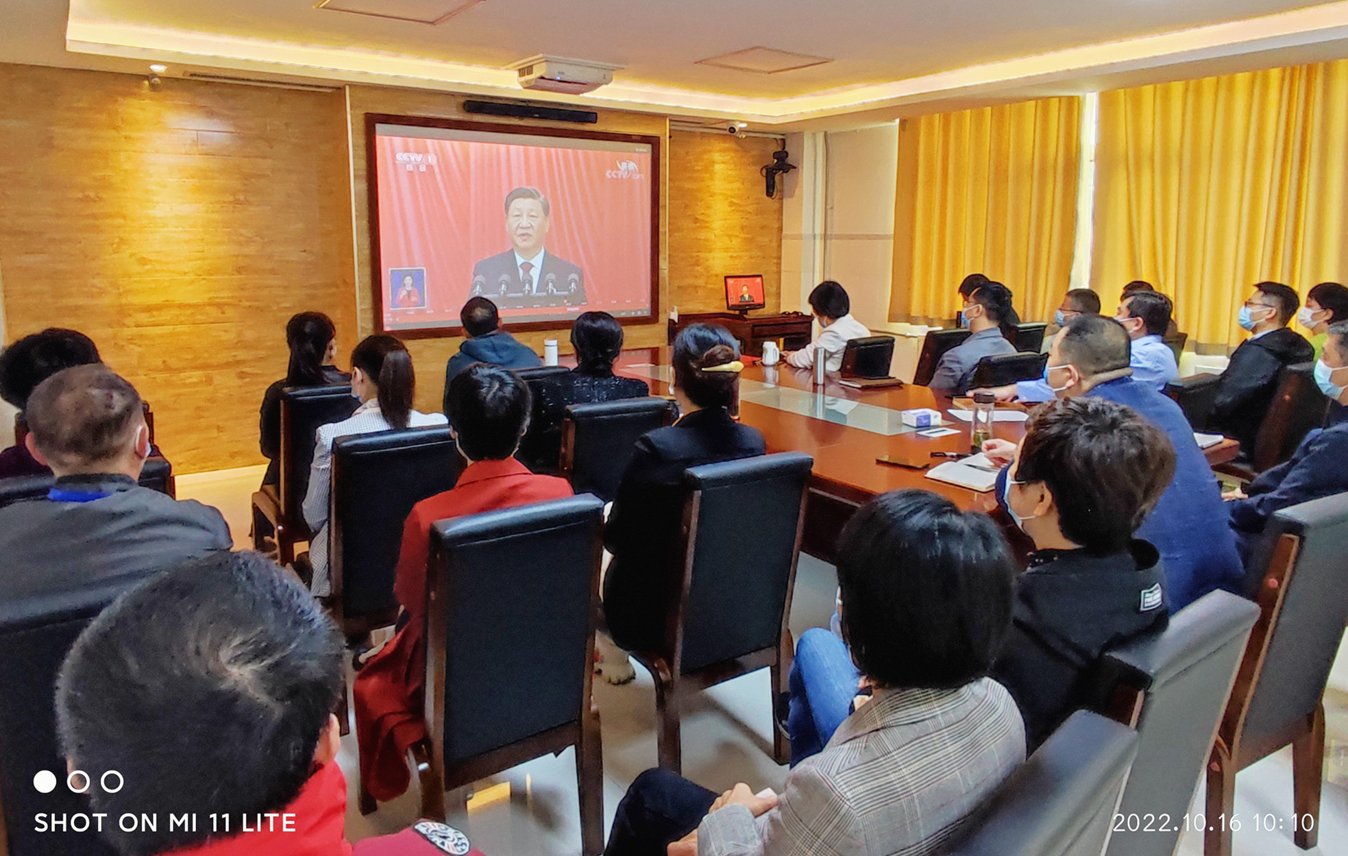 10月16日上午10时,院党委组织全院党员干部职工收听收看中国共产党第二十次全国代表大会开幕会。院领导班子成员、党群部门负责人和职能部室主任集中收看,党支部、各部室也组织干部职工通过CCTV、新华网、央视网等各类平台,收听收看了开幕会。