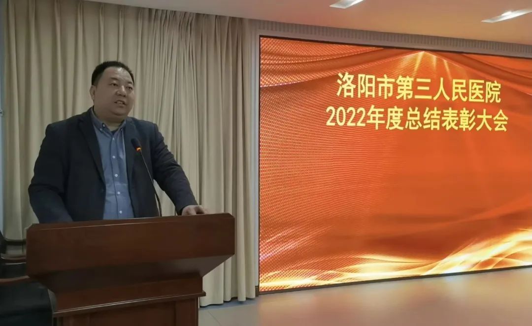 副院长王建丽同志宣读《洛阳市第三人民医院关于表彰2022年度先进集体和先进个人的决定》,院领导班子为27个先进集体、80名先进个人进行颁奖。