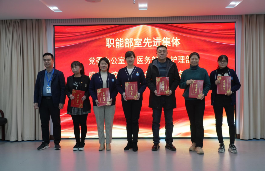 最后,党委书记董均同志代表院党委向一年来为守护群众生命健康不畏艰辛、勇毅坚守的全院干部职工表示崇高的敬意和衷心的感谢。他强调,要强化政治引领,把学习贯彻党的二十大精神作为当前和今后一个时期的重要政治任务,统一思想、凝聚共识、提升站位,以高质量党建引领医院高质量发展,通过加强人才梯队培养引进开发、打造特色明显的优势学科群、加快推进信息化建设、持续提升教学科研能力、不断优化服务流程等,多举措深化医院内涵建设、打造群众满意医院,以实际行动推动党的二十大精神在医院落地生根、见行见效!