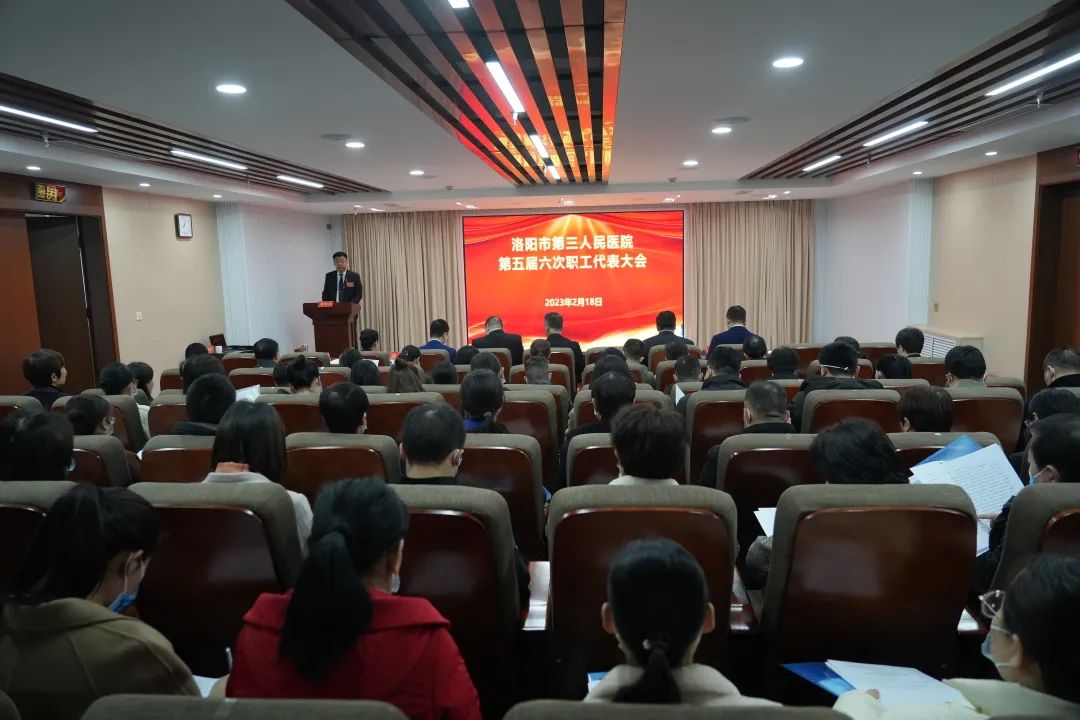 2月18日上午,门诊六楼学术报告厅,洛阳市第三人民医院(洛阳职业技术学院第一附属医院)五届六次职工代表大会在雄壮的《国歌》声中拉开帷幕。72名代表齐聚一堂,共商医院发展大事。会议由工会主席段言文主持。