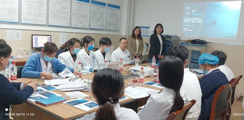 主要研究者李立鹏主任主持会议,机构办公室主任陈燕、科教科主任/伦理委员李立科、伦理秘书杨彤、科室医护人员、机构办/伦理工作人员、拜耳公司临床运营总监陈丽婷、临床监查员张淼、CRC等参加会议。