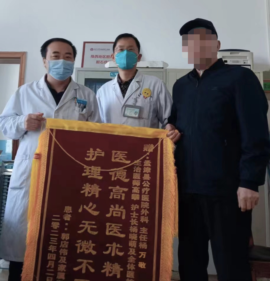 近日,洛阳市第三人民医院神经外科医生杨万敬收到了孟津人民医院(东院区)患者的一面锦旗。