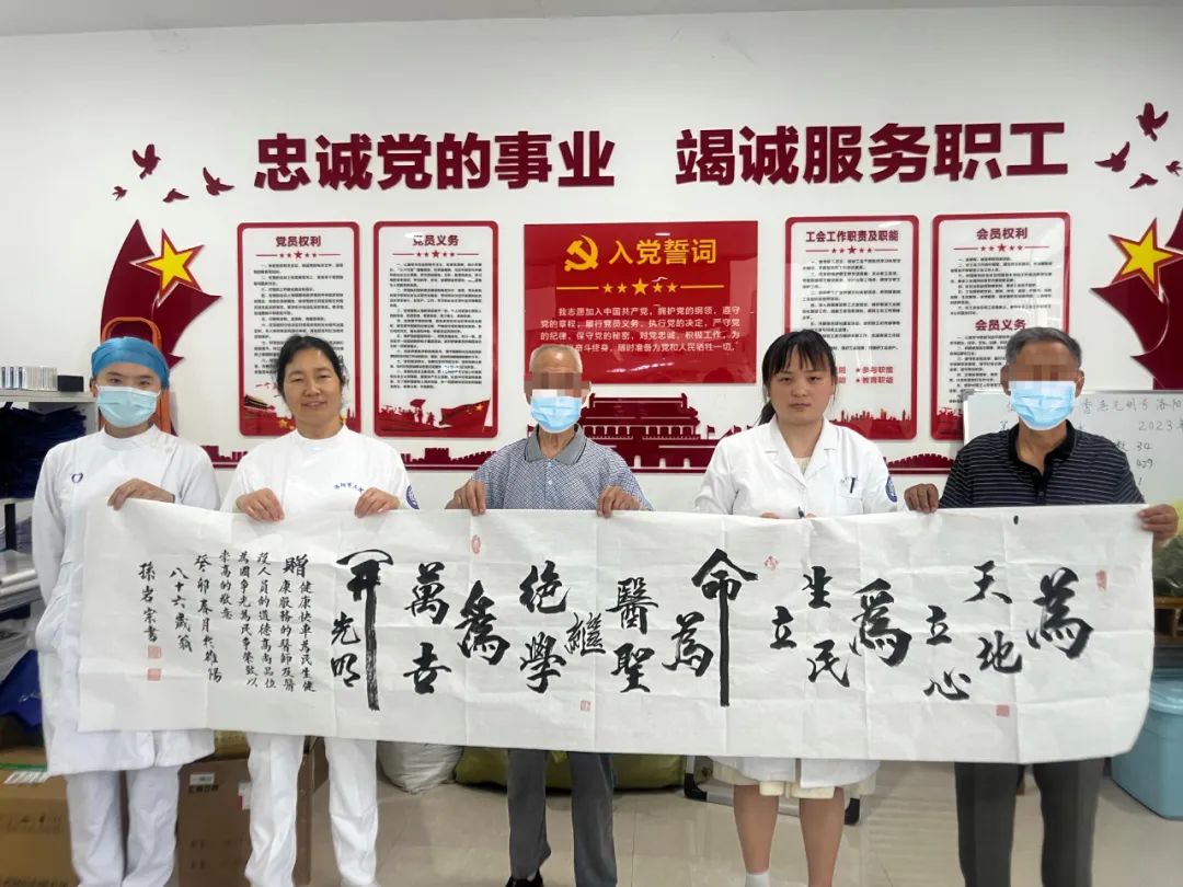 5月16日下午,到基地医院洛阳市第三人民医院参加健康快车白内障手术的孙老先生和赵先生送来一幅自己的书法作品,表达对健康快车工作的感谢。