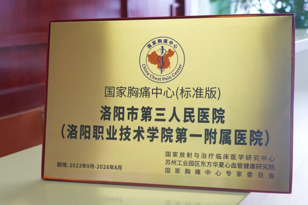 国家胸痛中心 近日,从2023年心血管健康大会上传来喜报,洛阳市第三人民医院被国家胸痛中心专委会正式授予“国家胸痛中心”,这标志着医院成功通过国家标准版胸痛中心认证。 胸痛中心是为急性高危胸痛患者提供快速、高效诊治的规范化诊疗系统。医院自2019年6月全面启动胸痛中心建设,严格按照国家胸痛中心建设标准开展规范化建设,成立胸痛中心办公室,建立健全各项制度、流程,通过多学科合作,最大限度的为胸痛患者提供快速的诊断,危险评估和恰当的治疗手段,从而提高胸痛的救治能力,降低胸痛患者的死亡率。在胸痛中心建设中,院领导身先士卒,督促开展全院全员胸痛知识培训,提高全院对急性胸痛患者的识别能力。 此次成功通过国家标准版胸痛中心认证,是对洛阳市第三人民医院胸痛中心工作成绩的肯定,医院将不断提升胸痛患者的救治能力和服务水平,严把质量标准,推动医院胸痛中心向更高层次、更高水平迈进。