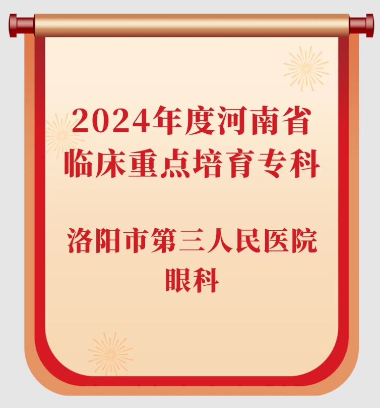 12月24日,河南省卫生健康委发布《关于公布2024年度河南省临床重点专科及特色专科名单的通知》,洛阳市第三人民医院康复医学科、眼科榜上有名!