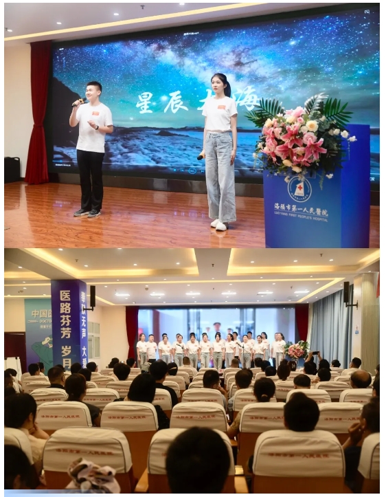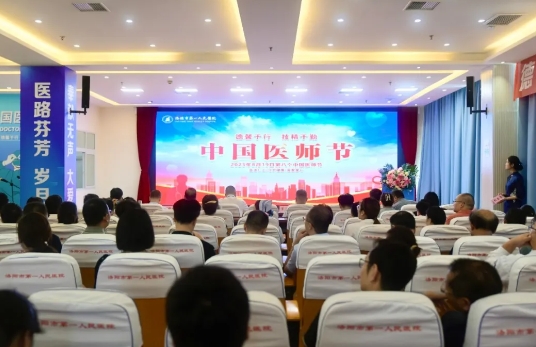 为弘扬崇高职业精神,致敬广大医师同仁,2025年8月18日下午,洛阳市第一人民医院举办以“德馨于行,技精于勤”为主题的“中国医师节”庆祝大会。院领导班子成员、临床医技科室主任及医师代表齐聚一堂,共同庆祝这一属于医师的光荣节日。大会由党委副书记、纪委书记胡亚蕾主持。