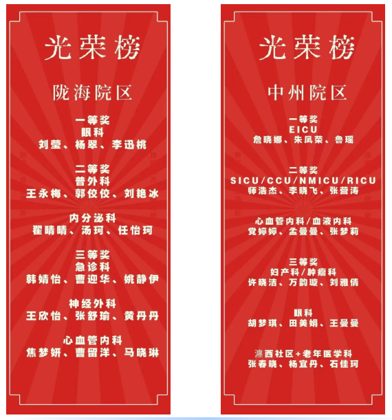 陇海院区护理部主任陈春霞现场宣读获奖名单,向获奖团队表示祝贺,对全体参赛选手的辛勤付出给予充分肯定。她表示,大家在繁忙临床工作之余仍保持学习热情与职业追求,这份坚守是护理团队最宝贵的财富。她勉励全体护理人员将竞赛成果转化为临床实践能力,掀起“比学赶超”热潮,让专业价值在守护生命的征程中熠熠生辉。