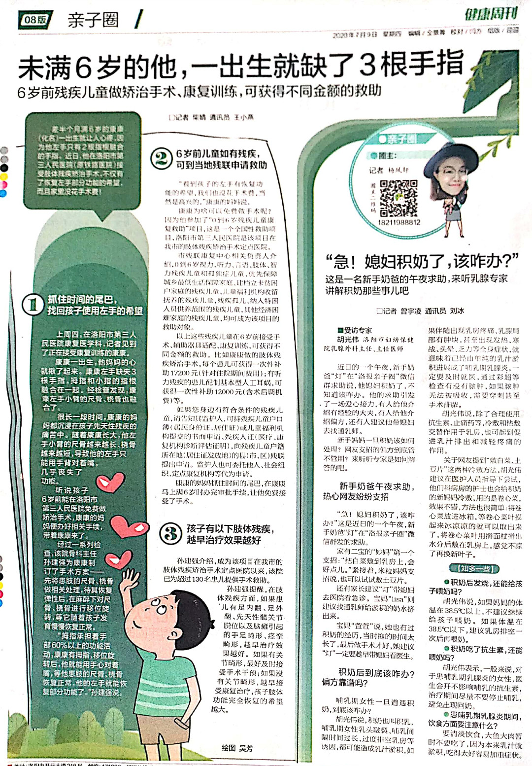 《洛阳晚报 健康周刊》:未满6岁的他,一出生就缺了3根手指