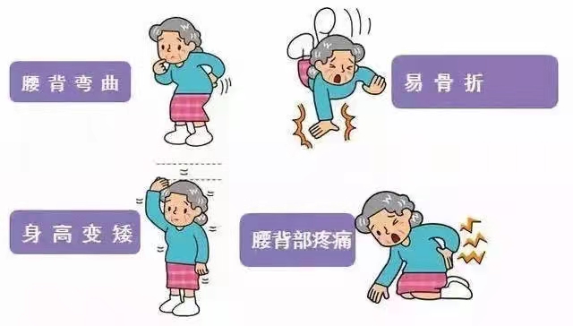 有乏力,腰背痛,甚至全身骨痛;跌倒、摔落时容易发生骨折。严重的骨质疏松还可能导致全身出现驼背等改变。王阿姨问我的骨质疏松是什么原因引起的呢?绝经后妇女雌激素缺乏使骨质吸收增加,导致骨量快速丢失,而出现骨质疏松。50岁以上妇女半数以上会发生绝经后骨质疏松,一般发生在绝经后5-10年内,最常发生在椎体。