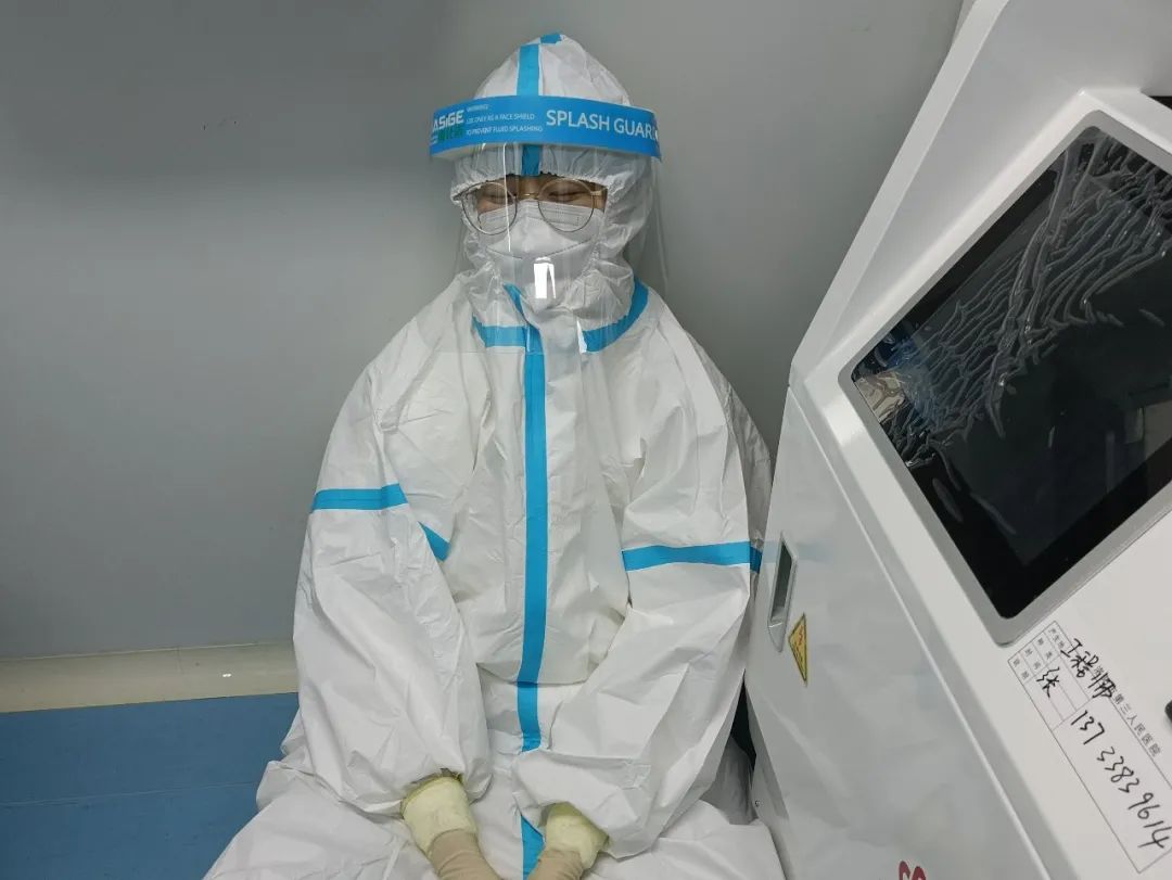 在日检测量最大的一天,检验师们24小时不停歇,超负荷完成了25000人次的核酸检测。90后的检验师韩盈晨实在扛不住了,就靠着实验室的墙休息20分钟,很快便重新投入“战斗”。