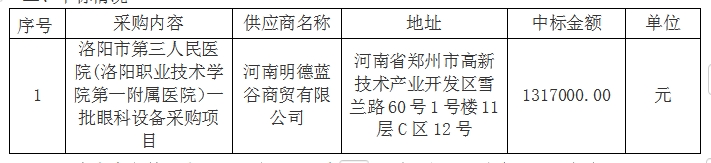 2、项目名称:洛阳市第三人民医院(洛阳职业技术学院第一附属医院)一批眼科设备采购项目