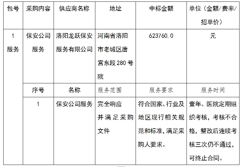 2.采购项目名称:洛阳市第三人民医院(洛阳职业技术学院第一附属医院)招聘保安公司服务项目