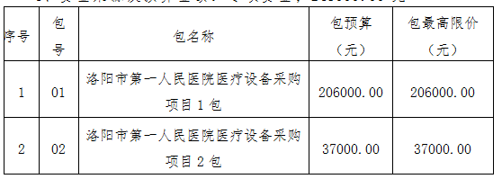2、项目名称:洛阳市第一人民医院医疗设备采购项目