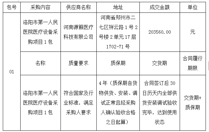 本次结果公告在《中国招标投标公共服务平台》《中国采购与招标网》《洛阳市第一人民医院官网》上发布。结果公告期限为1个工作日。