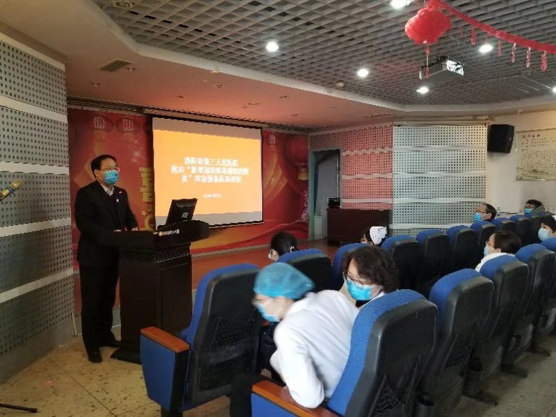 1月26、27日,洛阳市第三人民医院召开了抗击“新型冠状病毒感染的肺炎”应急预备队的培训班。院党委书记马伟、院长杨致远、副院长马辉、常书锋、纪委书记王建丽出席参与了此次培训。