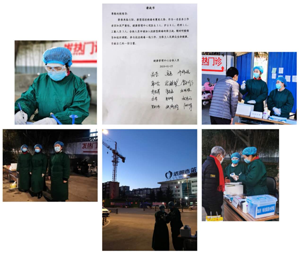 不掉队的娘子军 这一群人 来自洛阳市第三人民医院健康管理中心 有着“娘子军”的雅称 在打响疫情防控阻击战的那一刻 积极响应院方统一号召 停止休假 在大年初一,奔赴工作岗位 第一时间,全员递交请战书 用奉献与担当诠释着责任与义务 从守护健康到保卫健康… 暂停体检业务,全力协助防控一线 腾空所有体检诊室,设置留观病房 全员进入发热门诊预检队伍 疫情当前,我们一直在坚守 迎着早晨七点钟的太阳 挡着春寒料峭的瑟瑟寒风 送走天空最后一抹光亮 疫情当前,我们不退 60后、70后、80后、90后 超强联合,能文能武 视频宣教、防控知识普及 我们各尽所长,不遗余力 这场没有硝烟的战斗中 娘子军绝不会掉队 和战友一起团结战“疫” 等待春暖花开… 等待 三月春风满神州, 院落不闭迎亲朋, 体态康健笑颜开, 检阅八方行四海, 祝福战友人平安, 凯歌响彻云霄外, 旋来饮酒乐开怀。