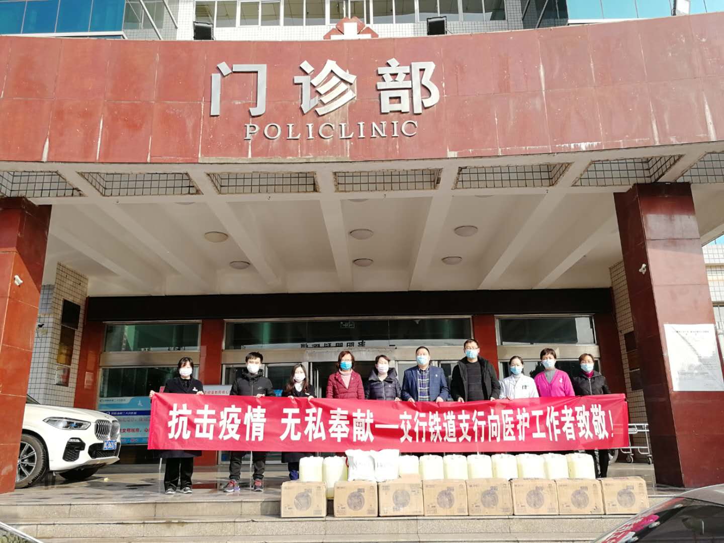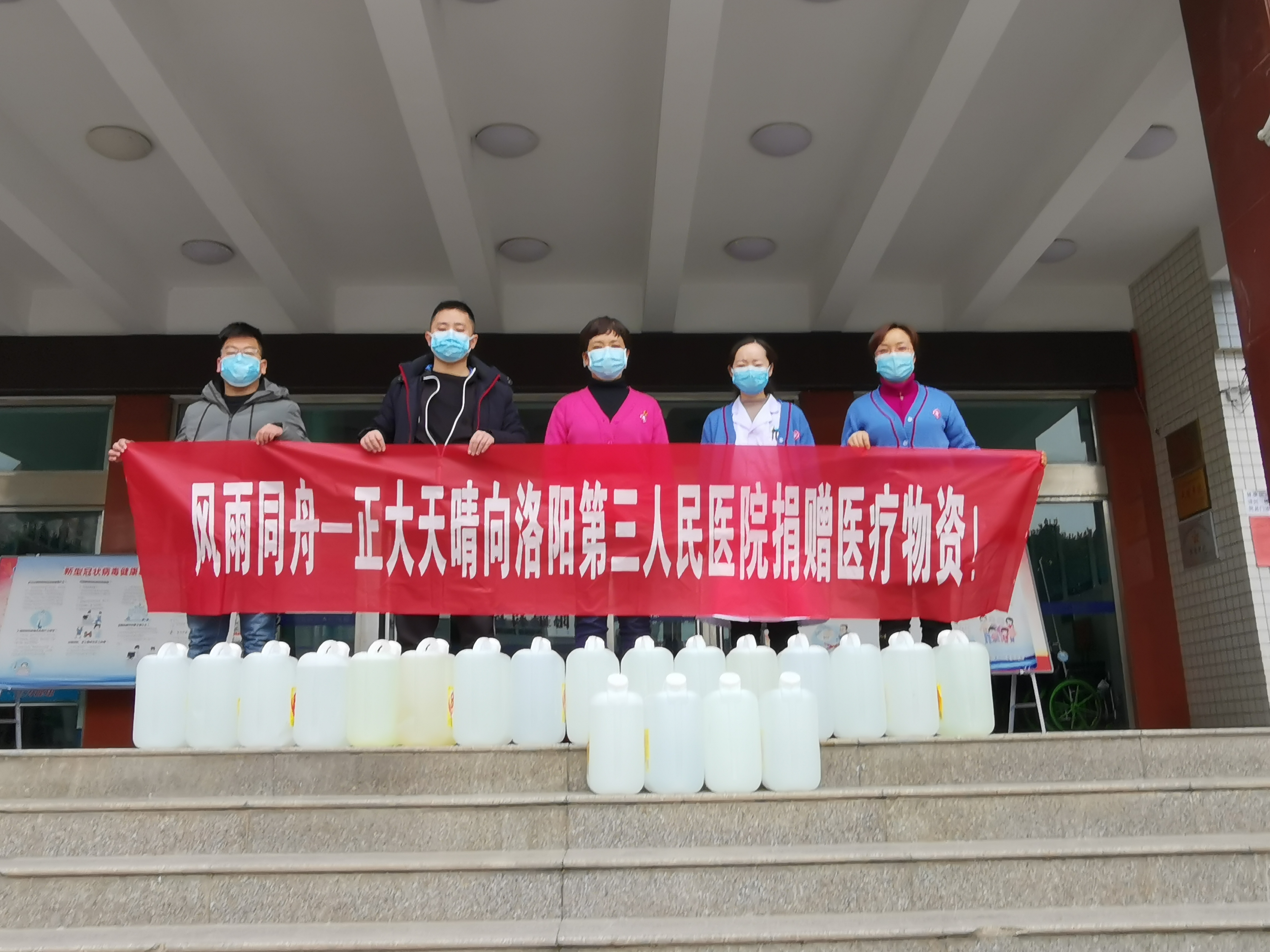 2月28日,交通银行洛阳分行铁道支行捐赠12桶规格为25L的84消毒液和200瓶规格为1L的酒精;洛阳市卫健委派发医用外科口罩200个。