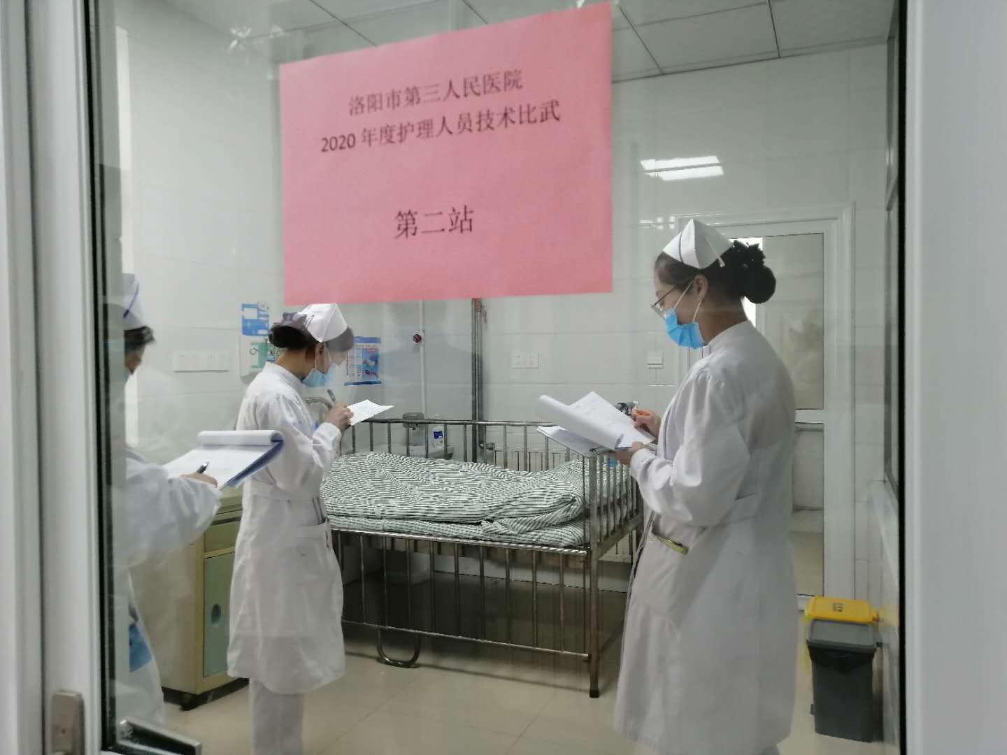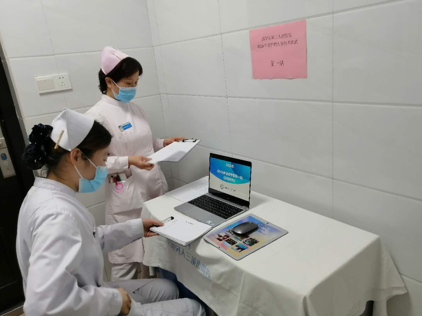 2020年4月22日、23日洛阳市第三人民医院如期举行护理人员技术比武,22日上午参赛选手进行护理助手线上理论考核,22日及23日下午进行多站式临床思维及技能考核,业务院长马辉及工会主席段言文亲临考场指导,意在通过比赛来提高护理人员的岗位胜任力,更好地服务于病人。
