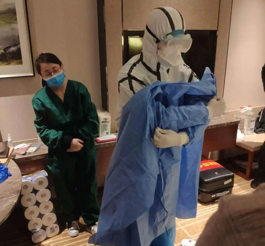 在疫情诊断中,CT检查属于不可缺少的一环。“有些肺炎患者在病毒核酸检测中呈阴性,但通过CT检查,就能发现肺部是否有病变等问题。”赵红梅说,若只进行一项检测,假阴性患者就可能成为“漏网之鱼”。所以,患者在确诊、复查等过程中,需要最少进行3次CT检查。 “入舱”前培训时,老师告诉我们,就连脱防护服的流程出错,都有可能造成感染。赵红梅说,在酒店的房间里,她和其他队员们分组进行防护用品穿脱的强化培训,确保人人过关。回忆起第一天进“舱”工作,赵红梅至今仍有些激动和不安。