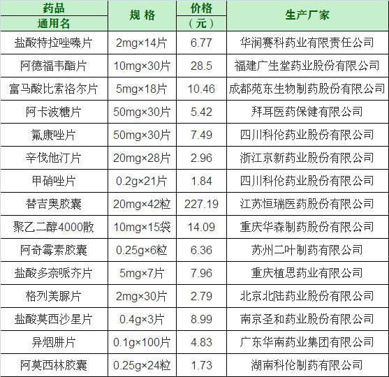 第二批国家集中采购药品共涉及抗肿瘤药、糖尿病用药、高血压用药、抗菌药等32个品种,价格平均降幅为53%,最高降幅达93%。如阿卡波糖从2.04元/片降至0.18元/片,降幅达91.18%。洛阳市第三人民医院共落地15个品种,15种药品及价格如下: