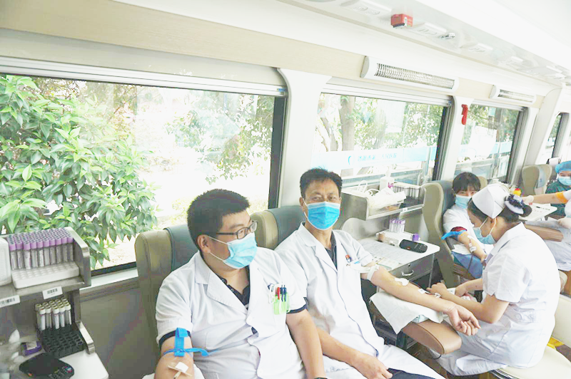 第九党支部书记、肾内科主任毛永炎,消化内科主治医师白瑞锋。白瑞锋在第一次采血不畅的情况下,坚持在另一手臂进行了采血。