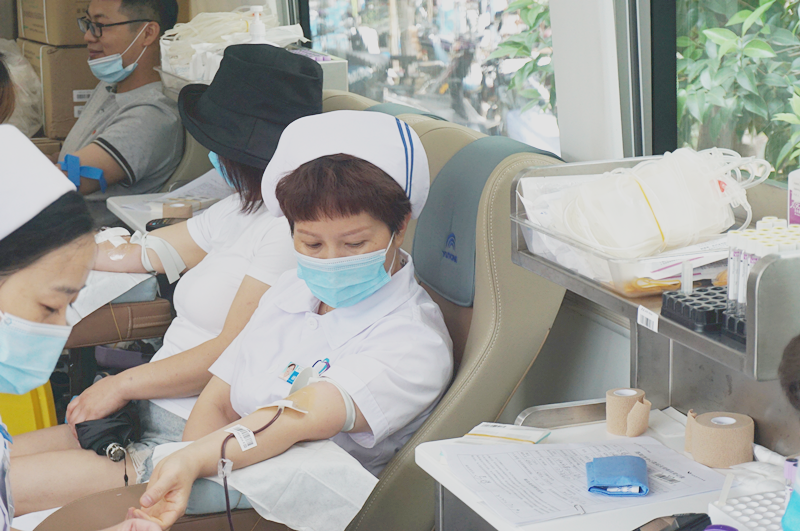 眼科主管护师钱淑红上午有十三台手术,一下手术,顾不上休息,就前来献血。